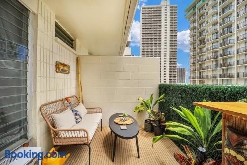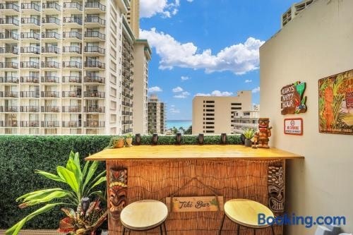 Honolulu şehrinde bulunan ve Kuhio Plajı noktasına 300 m, Saint Augustine by-the-Sea Kilisesi noktasına 400 m mesafede yer alan Surf & Sip Ocean View Tiki Style tesisi; ücretsiz WiFi, klima ve özel plaj alanı olanakları ile konaklama imkanı sunar.