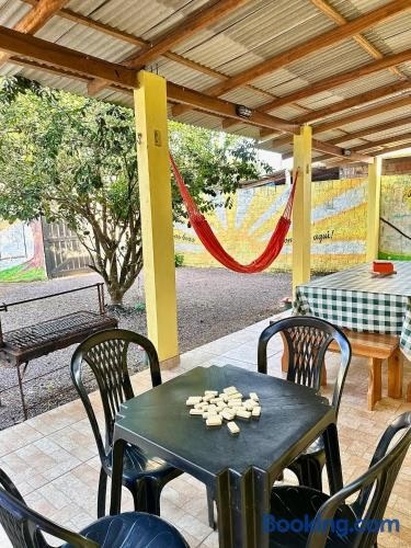 Presidente Figueiredo noktasında bulunan Casa Amarela tesisi ortak oturma alanı, restoran ve barbekü gereçleri olanakları sunar.