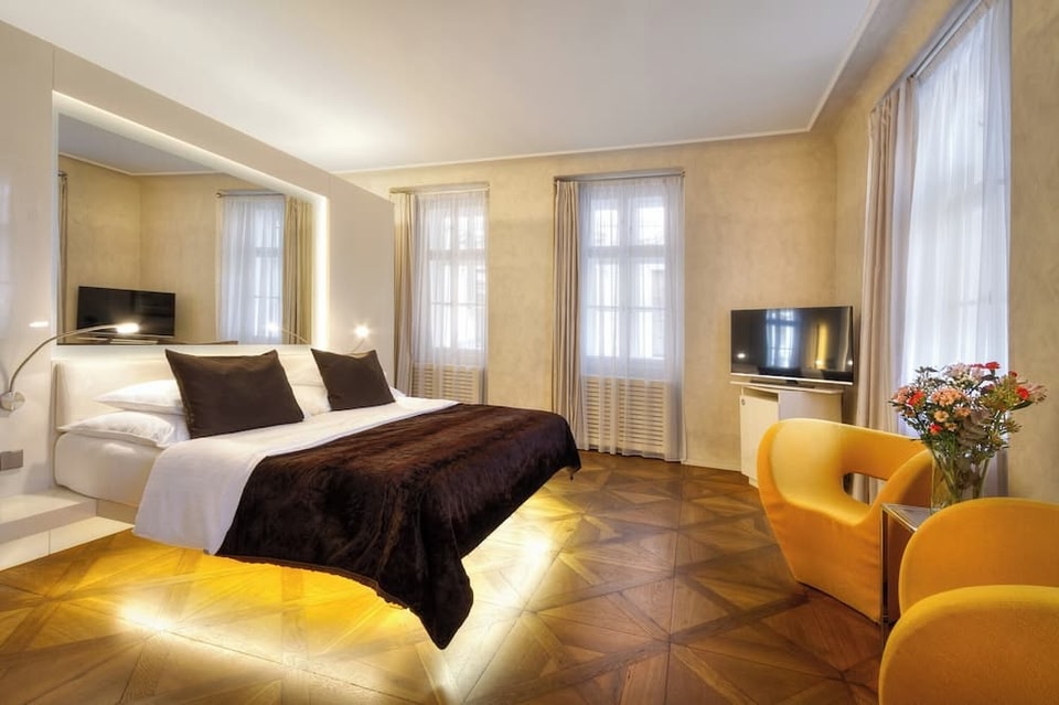 Prag'ın Küçük Şehri'nde yer alan lüks tasarım oteli Three Storks, 14. yüzyıla kadar uzanan ve o dönemde bir manastır bira fabrikasına ev sahipliği yapan tarihi bir binada bulunmaktadır. Kartal Köprüsü sadece 5 dakikalık yürüme mesafesindedir.