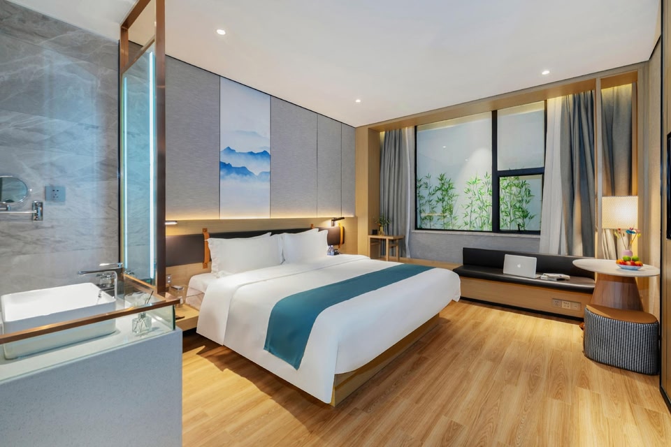 Mountain lake preferred hotel positioning high-end business hotel, the hotel is located in the mountains and lake road, dongguan dongcheng street cattle, guan long lake and mountain road intersection here, only 5 minutes from export drive huancheng south road, has diversified transportation network, canthus neighbors east bus station, light rail station in south east district, ecological park with sand and water poon hill station is being built, the distance is only 200 meters estuary metro subway, Convenient transportation. Nearby attractions: Dongguan Botanical Garden, Tongsha Ecological Park, Water Lian Mountain Forest Park is very close, 10 minutes drive to the core business circle of the east and south city, convenient shopping and entertainment; 70 minutes drive to Guangzhou Baiyun Airport and Shenzhen Bao 'an Airport. A variety of stylish and intelligent guest rooms are designed by well-known designers in the circle. The hotel is built according to high-end standards, equipped with Chinese buffet breakfast, exclusive gym, high-end conference room, laundromat, large parking lot and supporting facilities, etc. Guest rooms are equipped with brand memory pillow core, five-star hotel bedding, raw pulp paper extraction, imported brand toiletries, intelligent home appliances cinema......
