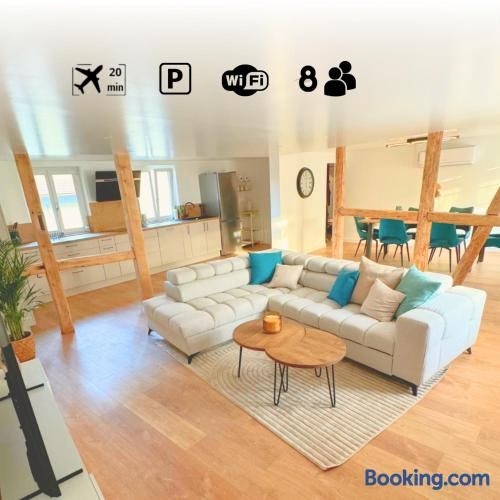 Şehir manzarası sunan ve Steinbrunn-le-Bas şehrinde yer alan Grand appartement chaleureux tesisi; Parc Expo de Mulhouse noktasına 12 km, Beyaz ve Mavi Ev noktasına 27 km mesafede yer alan bir tesistir.