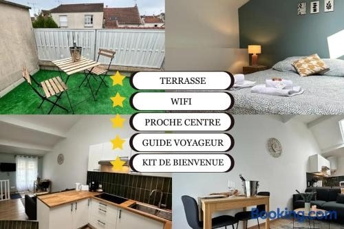 Les Hautes Promenades noktasına 1,2 km, Reims Tren İstasyonu noktasına 1,6 km mesafede bulunan Belin Cool terrasse et parking proche centre ville tesisi; ücretsiz WiFi ve teras olanağı ile konaklama imkanı sağlar.