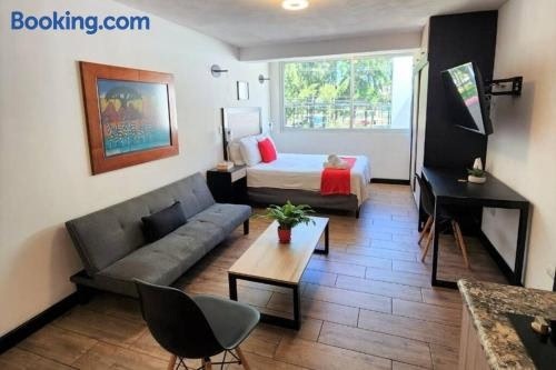 Guatemala şehrinin Zona 15 semtinde bulunan DSt4 Well stocked studio in zone 15 tesisi; Ulusal Guatemala Sarayı noktasına 6,1 km, Miraflores Müzesi noktasına 8,6 km ve Hobbitenango noktasına 34 km mesafededir.