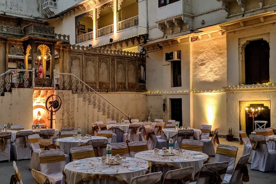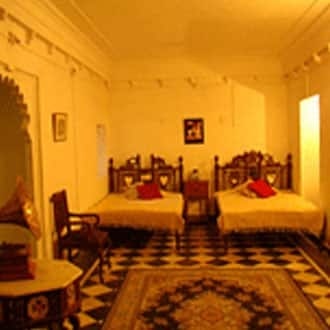 Easily accessible from the local bus stand, Rajmahal Bhindar offers comfortable accommodation to its guests. Conveniently located at a close proximity from Hinta Gate, this is a luxury property in Udaipur offering outdoor heated swimming pool, complimentary breakfast and Wi-Fi access to its guests. The luxury hotel has 20 well-appointed rooms, spread across 3 floors. Some of the amenities offered within the room include comfortable bed, desk and chair, bottled drinking water, telephone, television, balcony and attached bathroom with hot and cold running water facility. This Udaipur luxury property offers services like power backup, porter, 24-hours security, laundry, ironing, wakeup call and round the clock room service. Spa facility, kids pool, kids play area, front desk, luggage storage, airport transfer, travel counter and parking facility are few of the facilities available within the premises. Places of interest and travel hub in Udaipur include Udaipur City railway station (63.5 km), Radha-Krishna Temple (3 km) and Jagdish Temple (63 km). The closest airport to this property is Maharana Pratap Airport (42.5 km). Guest can dine-in at the in-house restaurant within the premises. What people love the most about this property is its great location and hospitality. Book now and enjoy world class services at Rajmahal Bhindar.