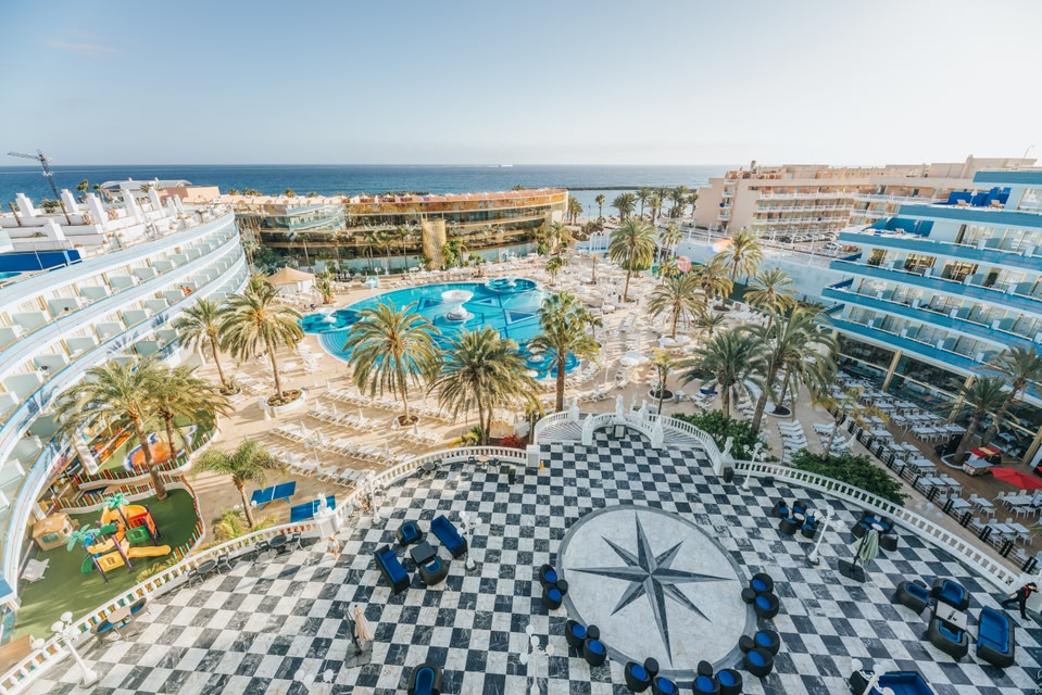 The Hotel Mediterranean Palace is part of the Mare Nostrum Resort complex located near Camisón Beach in Playa de las Américas, Tenerife.