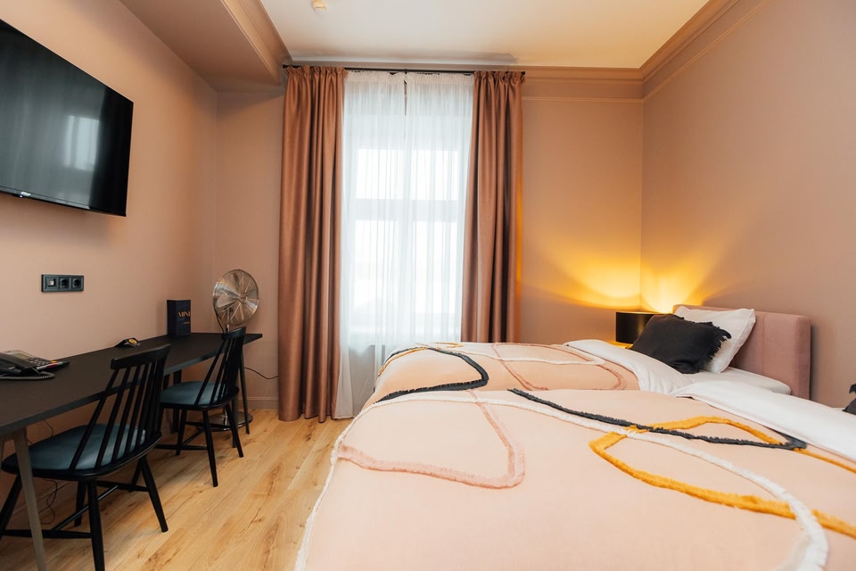 Comfortable Accommodations: Aparthotel Amella in Rīga offers spacious family rooms with kitchenettes, private bathrooms, and modern amenities. Each room includes air-conditioning, a washing machine, and free WiFi.